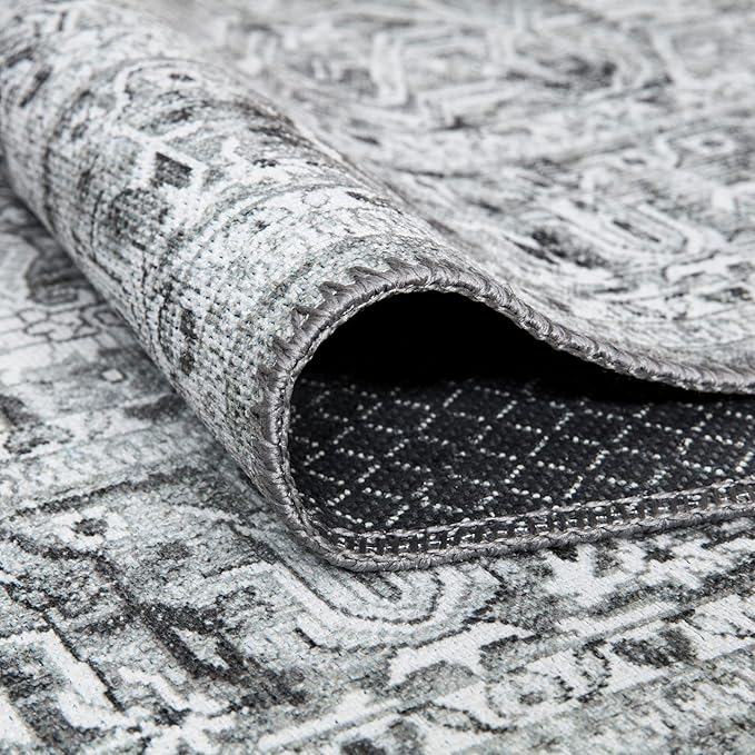 Bloom Rugs Washable Non-Slip 6' x 9' Rug - Gray/Charcoal Traditional Medallion Area Rug for Living Room, Bedroom, Dining Room, and Kitchen - Exact Size: 6' x 9'