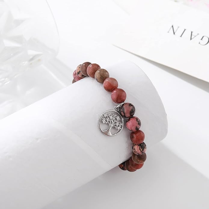 QWNHONEY Mothers Day Gift for Grandma Mom Mother in Law Sister in Law Bonus mom Granny Nana Valentine's Day Birthday Anniversary Pink Red Natural Stone Tree of Life Bracelet