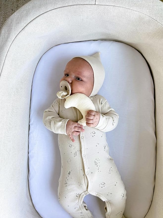 - ADORABLE DESIGNS: This plush toy is a convenient and practical tool for parents to use when caring for their baby. It comes in two attractive designs, star or moon, and two color options, sand or white. Easily use it as cute decor for your baby's nursery, and machine wash it on a cold cycle.