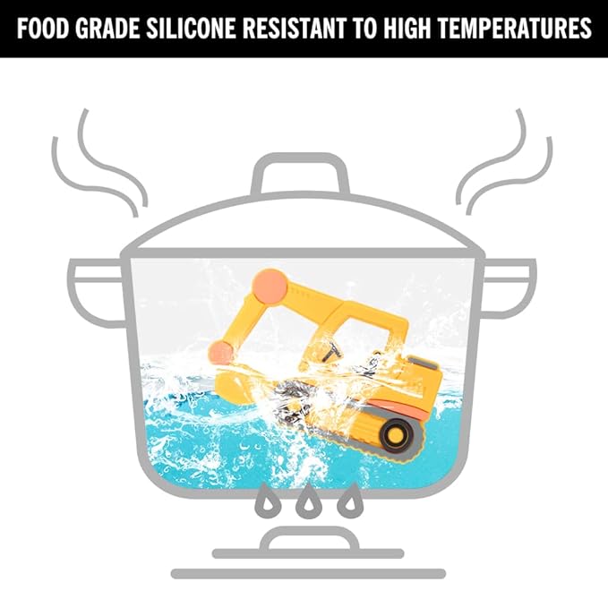 Baby Silicone Teether,Sensory Chew Toys,BPA Free Soft and Effective Infant Teething Pain Relief Toys,Freezer Safe,Food Grade Silicone,Best Shower Gift for Boys and Girls (Yellow Excavator)