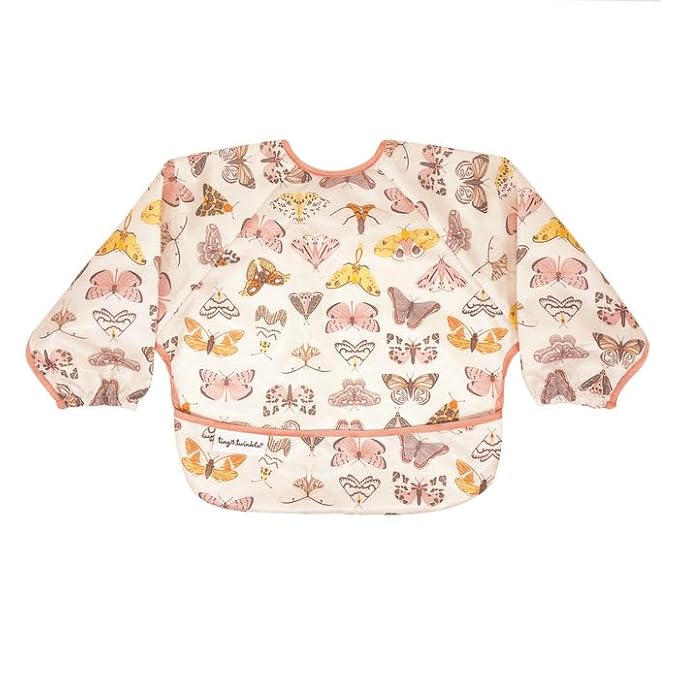 Tiny Twinkle Mess Proof Baby Bib,Waterproof Smock Baby Bib for Eating,Machine Washable Long Sleeve Bib,Baby Led Weaning,Toddler Bib,BLW Supplies(Flutter, Large 2-4 Years)