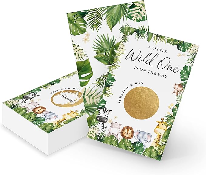 SRIHBET Safari Scratch Off Game Cards (50Pack), Forest Animals Baby Shower Game, Neutral Boy or Girl Event Theme Raffle Tickets Drawing Prizes Favors