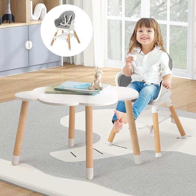 - 【Stable & Safe Design】Supported by solid beech wood legs with anti-slip foot pads, the baby highchair ensures high stability and won't wobble. Besides, there is a 5-point safety harness and an anti-falling baffle to protect your baby from sliding off from the chair.