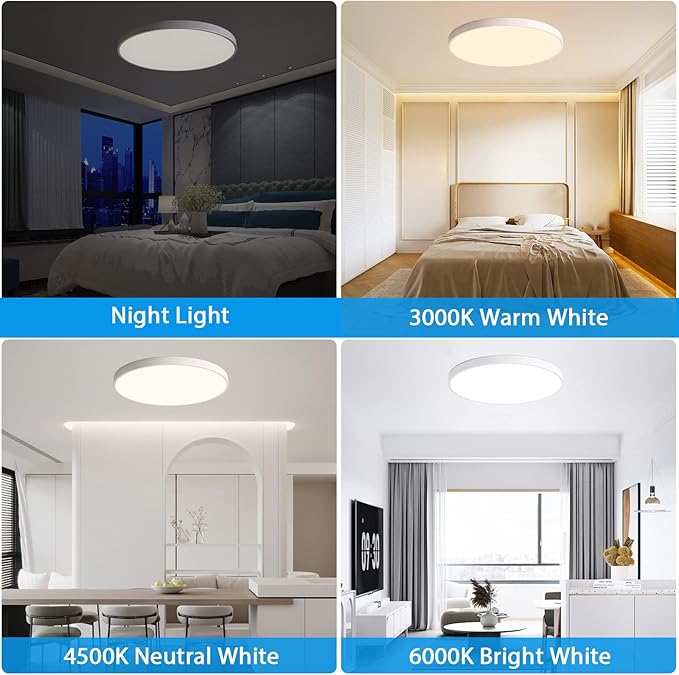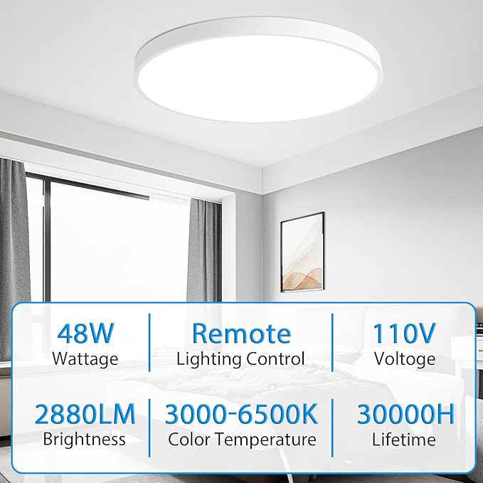 - Dimming with Remote: The dimmable ceiling light with a remote can continuously adjust brightness from 10% to 100% and change color temperature from 3000K to 6500K by remote control. Great for bedrooms, bathrooms, kitchens, home offices, hallways, and nurseries. (DO NOT WORK WITH A HOME DIMMER)