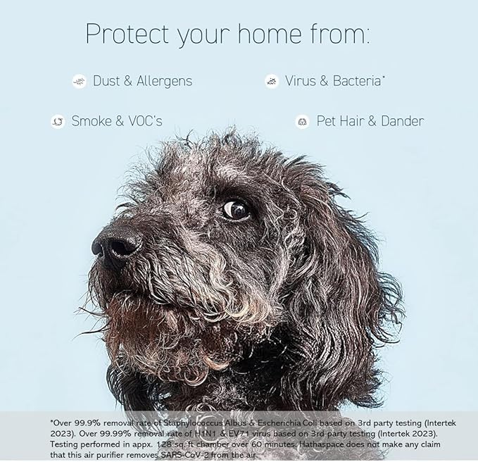 HATHASPACE HSE600 True HEPA Air Purifier for Home, Removes 99.9% of Dust, Smoke, Pet Dander, Odors, VOCs, Covers Up to 600 Sq. Ft, Quiet Air Cleaner with Smart Sensor for Bedroom & Large Rooms