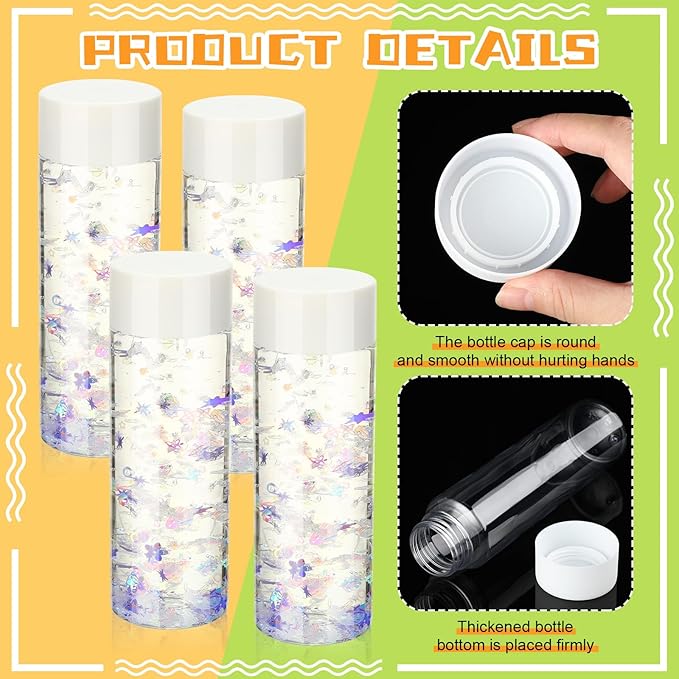 - Practical Sensory Bottle Supplies: there are 16 pieces of empty plastic sensory bottles with white lids, enough quantity and capacity for you to use or place in daily life, family gatherings, dinner parties, picnics, BBQ or other activities
