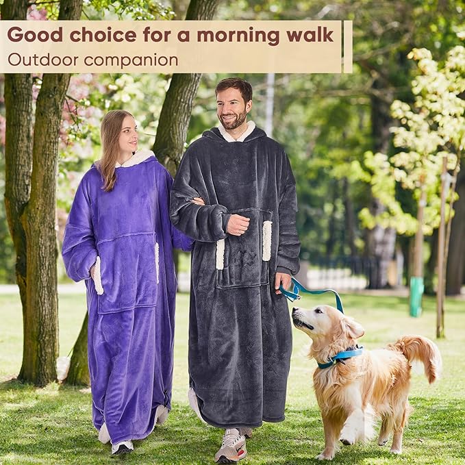 - 💖【STRONG SEAMS & RIGHT LENGTH】 If you decide to own wearable blanket now, don't hesitate due to falling apart and bulky feeling that other blankets give you, which we already solved. Our sherpa hoodie with armpits and sleeves reinforced tightly allows you to extend your arms fiercely, jump off the sofa or bed directly. The hooded blankets for adults with a 47”-50” length will be below your knees and above your ankles, which means it doesn't drag on the floor when you stand, moving more freely.