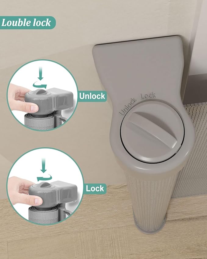 - 【Safety Locking Use】Miumoon retractable gate lock requires pressing and rotating two simple steps to open and close, ensuring that adults can easily operate the gate with one hand, keeping curious little ones and pets from mischievously seeking freedom.