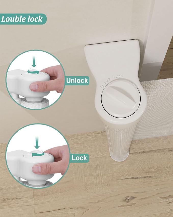 - 【Safety Locking Use】Miumoon retractable gate lock requires pressing and rotating two simple steps to open and close, ensuring that adults can easily operate the gate with one hand, keeping curious little ones and pets from mischievously seeking freedom.