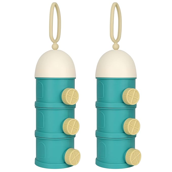 Accmor Formula Dispenser On The Go, 3 Layers Stackable Formula Container to Go, Non-Spill Portable Milk Powder Baby & Kids Snack Containerr, Green