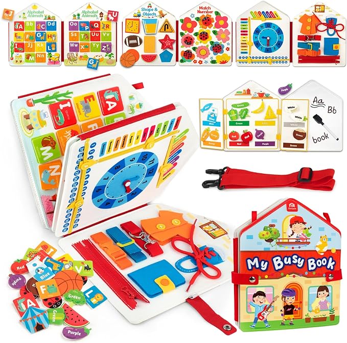 - Play and Learn Activities: Our Montessori busy book is perfect for classroom or home school to help kids building fine motor skills, hand-eye coordination, and cognitive skills! It is a good toy for learning colors, shapes, numbers, and more. In addition, it also helps to enhance children's confidence by solving problems while playing.