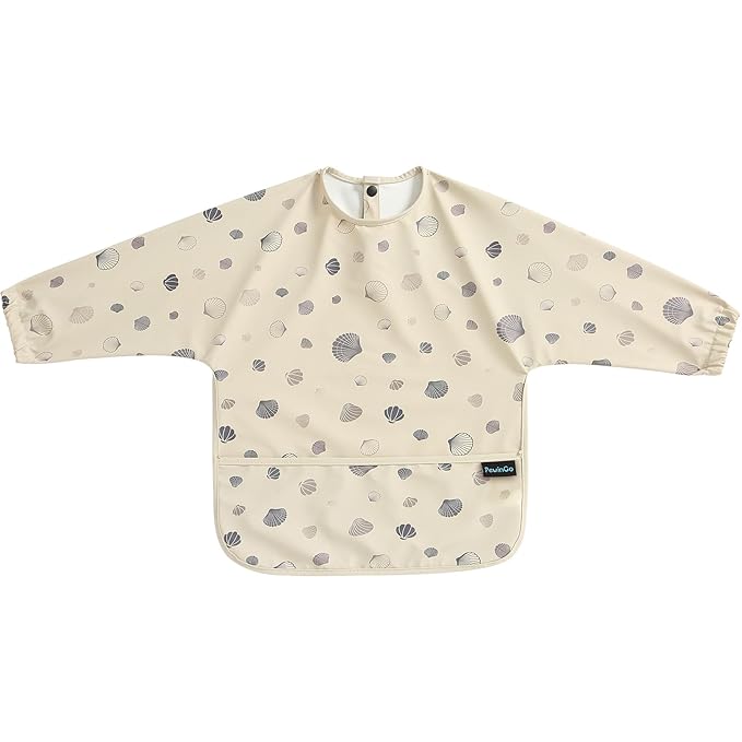 Baby Bib with Long Sleeves Bib & BLW, Machine Washable & Soft and Skin-Friendly Material, Coverall Bibs for Baby Feeding, Waterproof and Easy to Clean, for Baby Infant Toddlers (Beige)