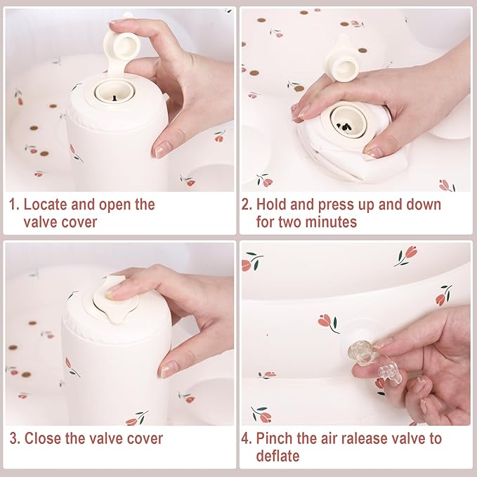 - Built In Air Pump: The AirSwim baby inflatable seat can be easily inflated by pressing up and down on the built-in inflatable pump, the baby blow up chair is designed to be leak-proof, the valve needs to be squeezed when deflating, easy to fold and store