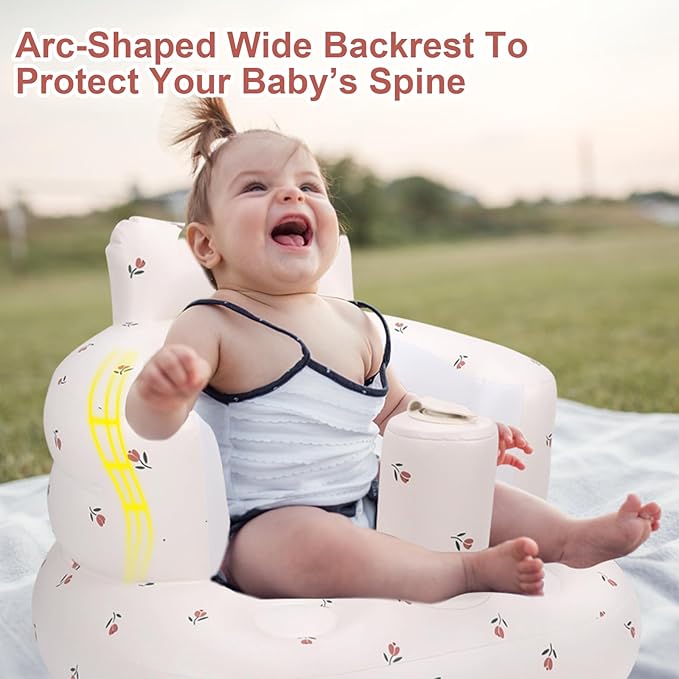 - Protect Baby's Spine: The large curved and wider backrest of the inflatable chair for baby provides soft and strong support for the baby, and better protects the baby's spine when the baby learns to sit up, suitable for babies 3 months and up