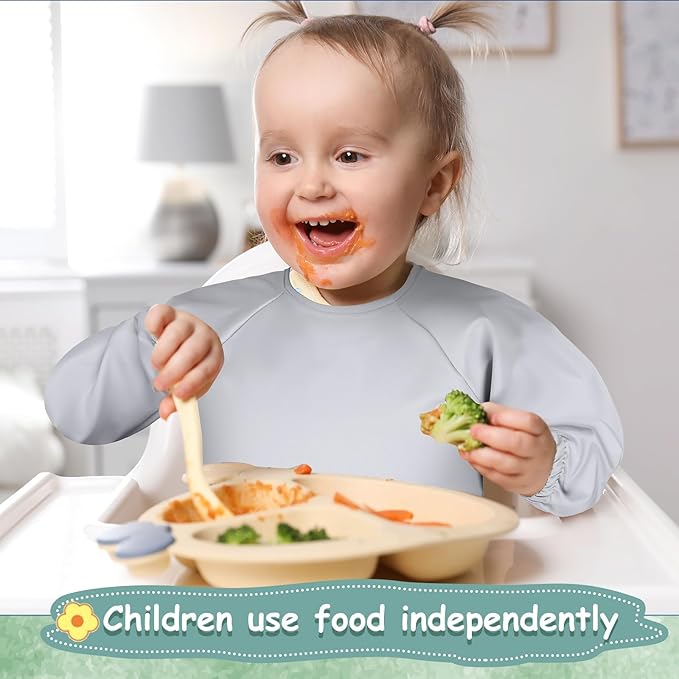 - Nice Workmanship: these sleeved bibs for babies can keep you babies' clothes clean, and reduce washing times; Feeding time can be relaxed enough without worrying about the mess; Our mess proof kids bibs take the hassle and frustration out of food time
