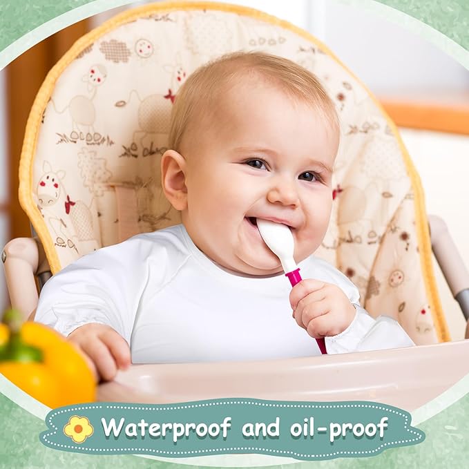 - Reliable Material: the mess proof waterproof bibs are made from a polyurethane waterproof material that is treated with a signature multi-layer waterproof backing that is entirely no BPA, BPS, PVC, and phthalate; With a no scratch hook and loop closure, our bibs are made to be comfortable on little ones and difficult to remove without adult assistance