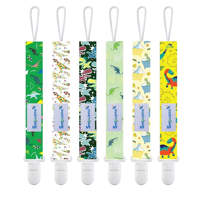 Smlpuame Baby Pacifier Clip for Boys Girl,6 Pack Stylish Binky Clips Strap,Paci Holder with Clips Universal Lightweight Fits Most Pacifiers Teeher Toy Teething Ring Soothie,Baby Gifts(Dinosaur)