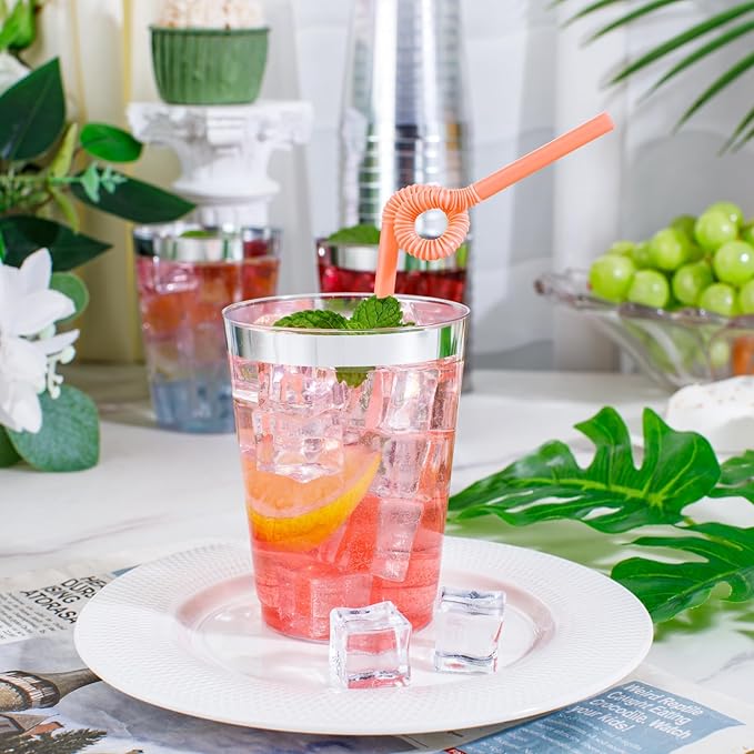 supernal 200pcs 10oz Silver Plastic Cups,Disposable Wine Glasses Cocktail Glasses Premium Cups,Party Cocktails Tumblers,Silver Rimmed Plastic Cup for Party,Wedding, Birthday,Thanksgiving Day