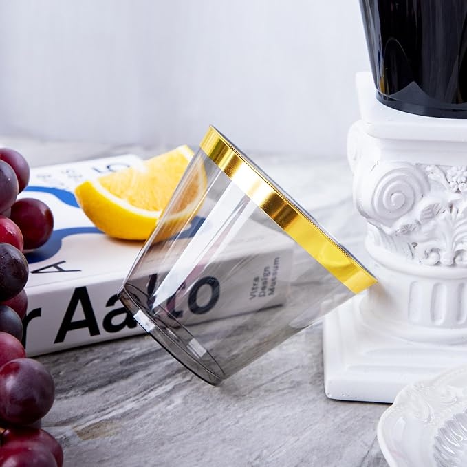 - Strong durability: Elegant gold rimmed plastic cups are usually made of high-quality plastic and have high durability. They are not susceptible to breakage, deformation or damage under normal conditions of use, so they can stand the test of time.