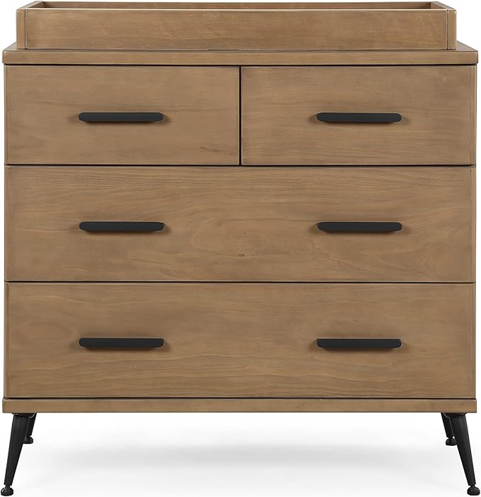 - Dresser Features: Crafted of sturdy, sustainable materials like New Zealand pine to give it plenty of longevity. For your child’s safety, this dresser is outfitted with an interlocking drawer system that limits the number of drawers that can be opened at one time. For additional security, we strongly recommend that all dressers in your home be anchored; dresser includes a wall anchor.