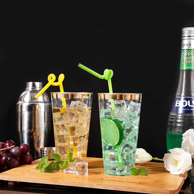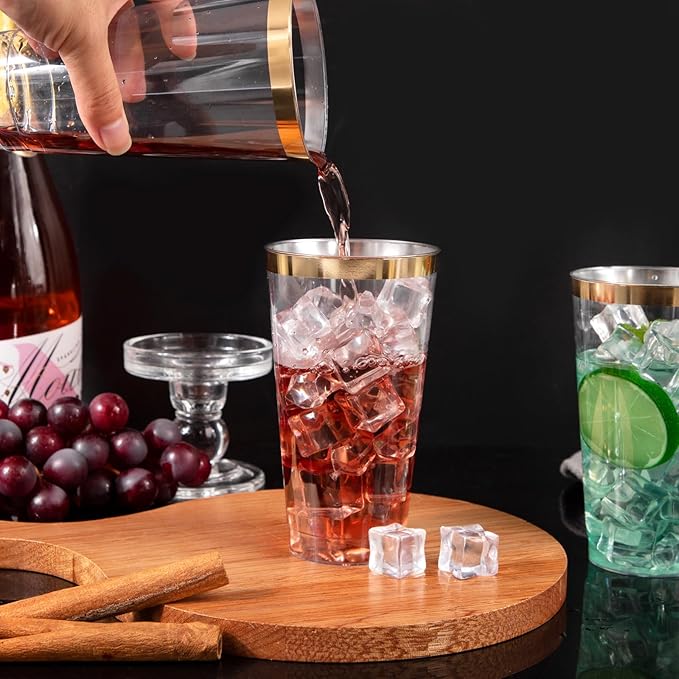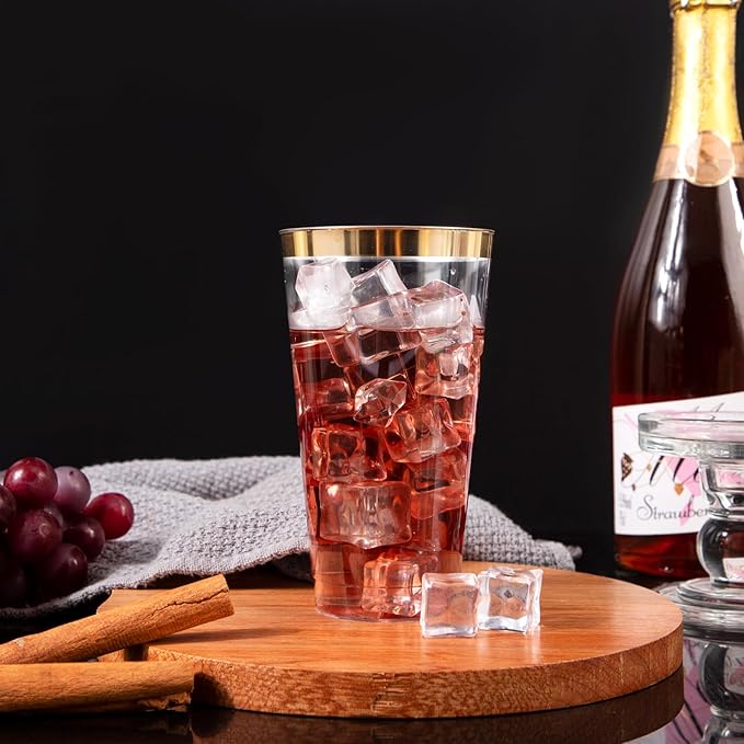 - PACKAGING COMBINATION: Our clear plastic cups with gold rim come in a total of 100PCS and have a 12oz capacity, suitable for most occasions. For example: weddings, birthdays, Thanksgiving, Christmas, family reunions and other events. Perfect for family events or business use.