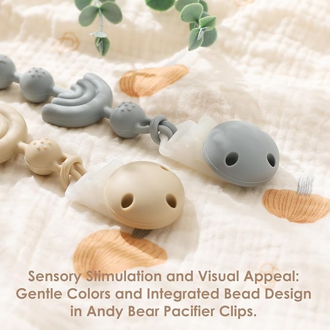 Baby Pacifier Clips One Piece Binky Clip Holder Silicone Teether Clip Pacifier Straps with Clip Baby Teether Toys for Boys and Girls Set of 3 Andy Bear-Ivory+Sage+Baby Blue