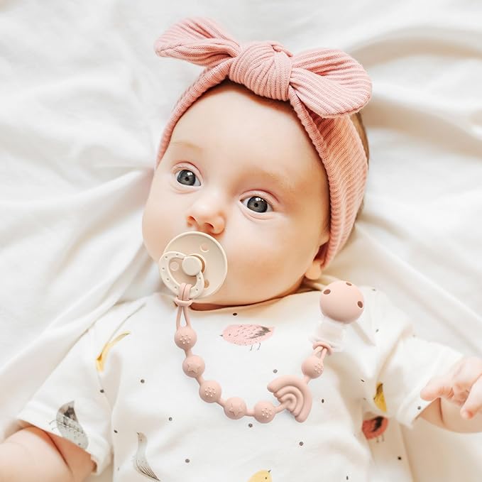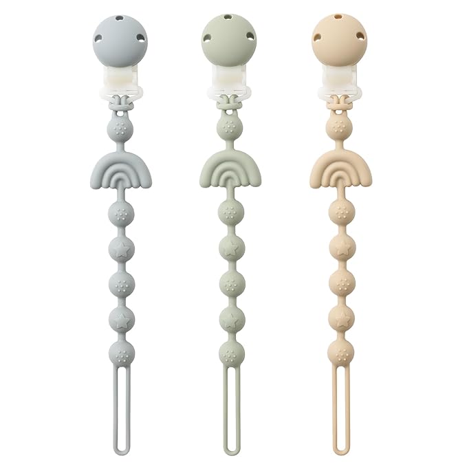 - Boho Design: With a gentle color palette and an integrated bead design, our pacifier clips provide sensory stimulation and visual appeal for babies. The inclusion of a small rainbow design in the middle of the chain adds a touch of playfulness and captures the imagination, making it a favorite toy for babies.