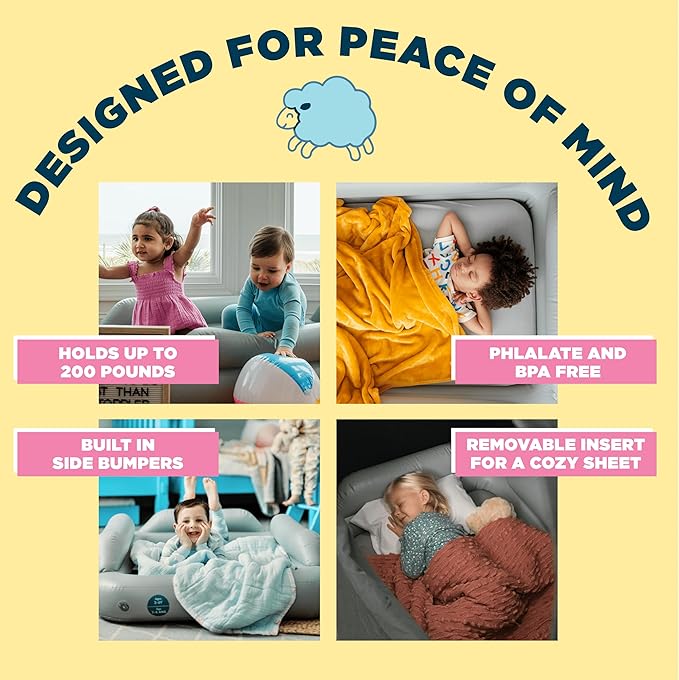 - Versatile Usage: Great for sleepovers, visits to Grandma's, vacations, and more, SlumberTot provides a soft-touch sleep surface with integrated side rails, ensuring air-filled comfort and peace of mind for your little ones.