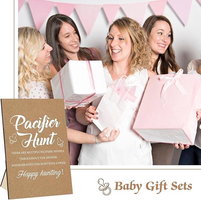 - Nice and Elaborate Combination: there are 50 baby shower baby pacifiers and 1 wooden cool baby shower game hunt sign in the package, enough for you to plan your baby's baby shower party and to share with your friends and family