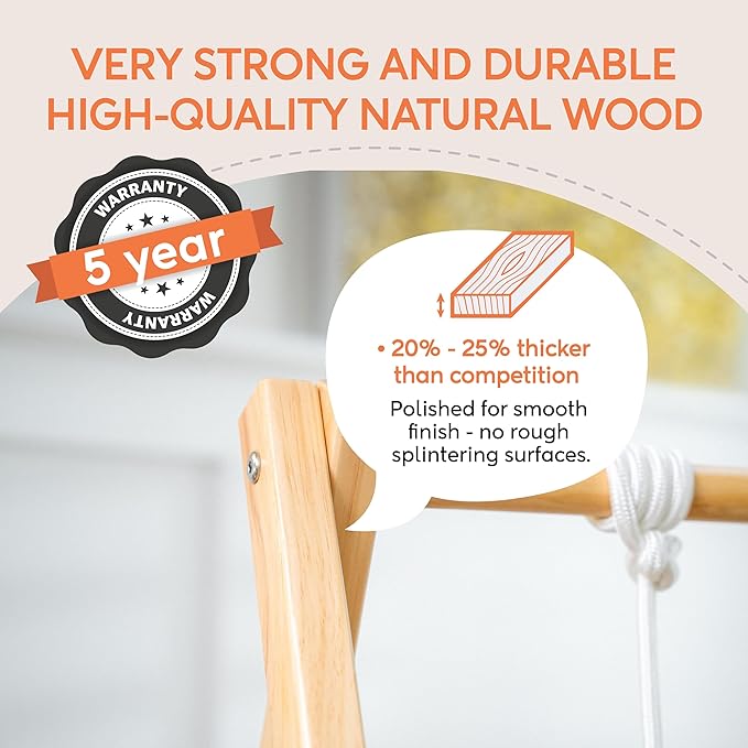 - Safety at its Core: This stand alone swing for toddler is designed with smooth rounded wooden bars that keep your baby hands safe while providing a truly enjoyable swing experience with top-notch quality rope.