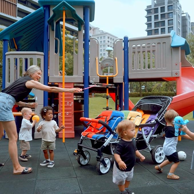 - SPACIOUS AND COMFORTABLE SEATING - The H6E 6-seat tandem stroller comfortably accommodates up to 6 children and includes a Back Seat Footrest Extension, suitable for children aged 0-36 Months. This extension offers unparalleled comfort, supporting your child's legs for a cozy ride on any journey. Parents can relax, knowing their baby is comfortable and secure. The front seats are suitable for children aged 6-36 Months.