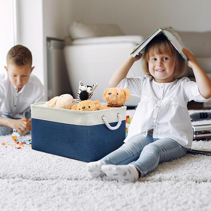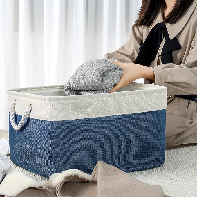 TheWarmHome Organization and Storage Basket for Organizing - X Large 3 Pack 17.7L×13.8W×9.8H in Collapsible Storage Bin for Shelves, Basket for Gifts Empty Toys Organizer Gift (White & Jean Blus)