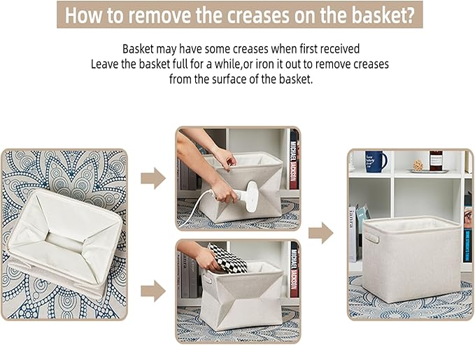 - 【Collapsible Baskets, Easy Clean】 The foldable storage bins basket feature allows you to save space when not in use and provides the convenience to bring along with you anywhere.Not recommended to machine wash as collapsible clothes basket sets are a metal frame and hard-bottom support inside. Only need spot cleaning for fabric storage bins with light soapy water