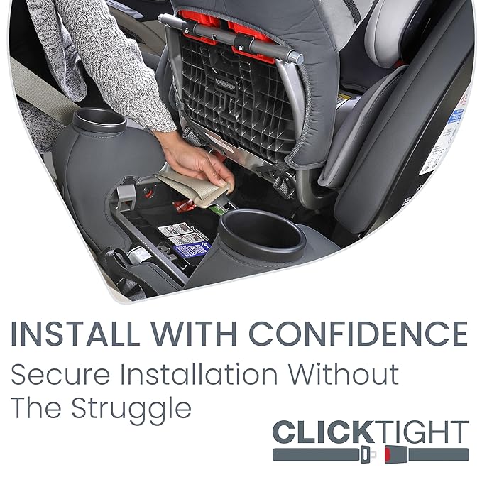 - INSTALL WITH CONFIDENCE: ClickTight(R) technology makes installation easy β simply open the seat, thread and buckle the seatbelt, and click the seat closed