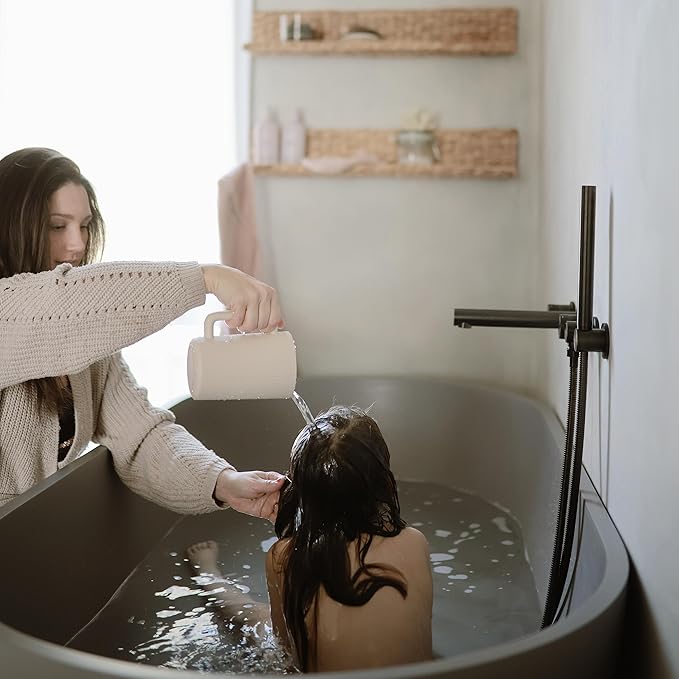 - Beautifully Designed for the Bathroom: Bath Rinse Cup measures 4.9 x 3.1 x 5.9" w/ handle (12.5 x 8.5 x 15 cm), and can hold 28 fl. oz capacity (830 mL)