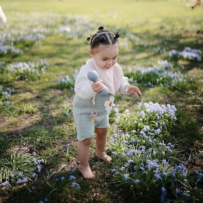 - Baby Sensory Essential: Make playtime more engaging with our Silicone Baby Rattle that offers a gentle sensory experience for little ones. Perfectly sized for tiny hands, babies will benefit from its easy-to-hold design as they explore the world around them.