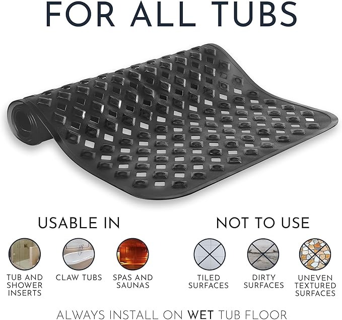 - Important: Clean surface before using. Secure suction cups of the non slip bathtub mat before each use: Press nonslip bathtub mat firmly to the wet tub floor. Shower Mat will only attach to clean, smooth surface. Avoid using our tub mats non slip anti mold on textured, tiled, non-smooth and refinished surfaces. Do not use bath oils and jump on the bath tub mat to avoid slipping.