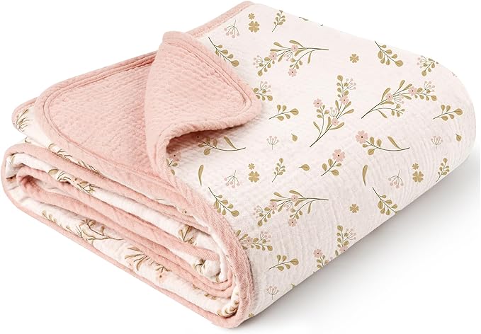 Konssy Muslin Baby Blankets for Girls Boys, 100% Cotton Crib Blanket for Infant Toddler, Super Soft and Lightweight Nursery Swaddling Wrap 40"x36" (Floral)