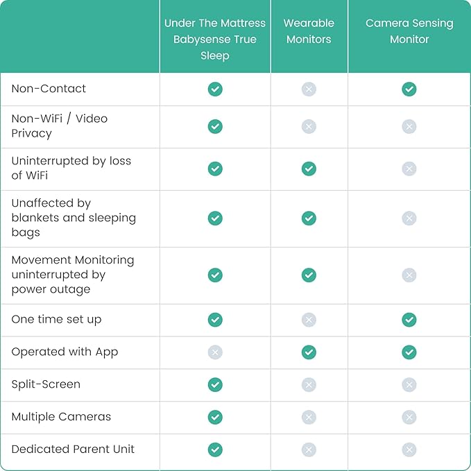 - Under-The-Mattress Movement Monitoring: Now with enhanced sensitivity - This highly sensitive non-touch device monitors a baby's micro-movements through the mattress. It includes two sensor pads to cover the entire crib area without touching the baby or disrupting the baby's sleep.