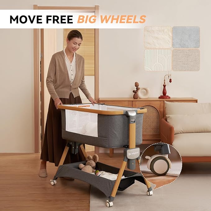 - Easy Mobility: Babyboat bedside bassinet sleeper features four large 360Β° rotating casters for bedside, livingroom, outdoor and an automatic locking mechanism for secure bedside. It's ideal baby sleeper for nursing mothers.