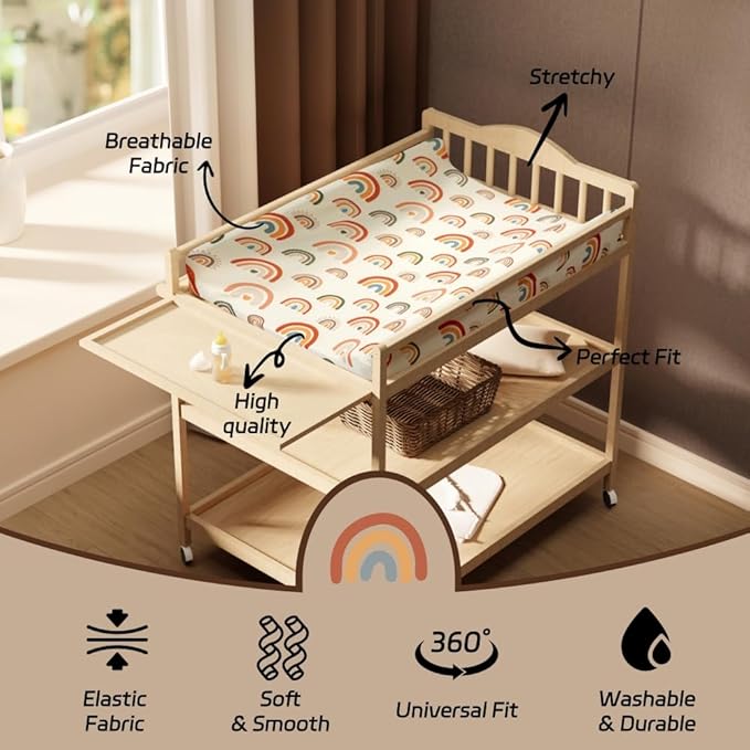 4 Pack Boho Nursery Sheets - Sunshine and Rainbow Design, Neutral Unisex Fitted Baby Changing Pad Cover Sheets for Baby Boys or Girls