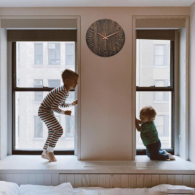 Wall Clock Battery Powered 12 inch Silent Wall Clock, Exquisite Modern Style Decorative Clock, Suitable for Home, Office, School, Kitchen, Bedroom, Living Room (Brown)