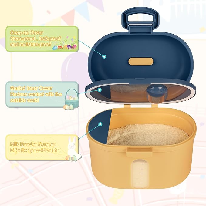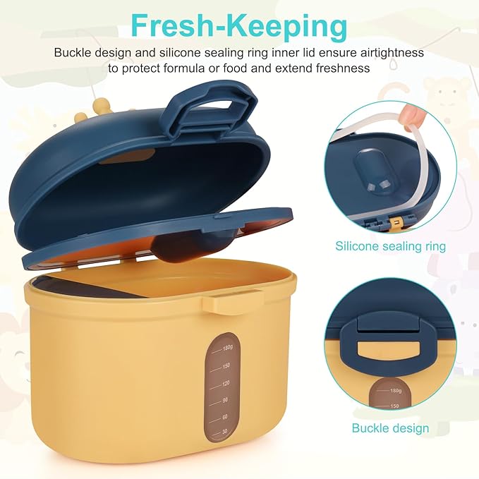 - Sealed Milk Powder Container - Inner lid attach silicone sealing ring , the outside lid have buckle design, there are double barrier to ensure the freshness of milk powder and food.