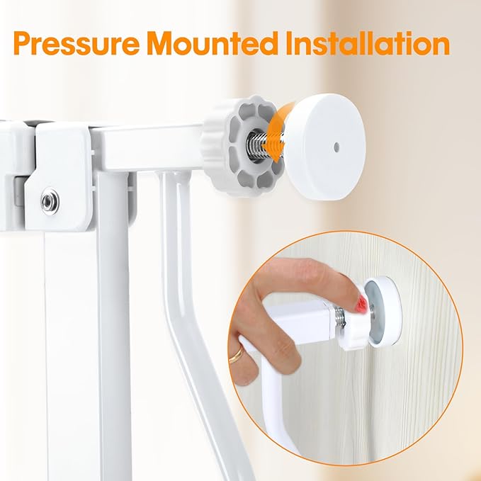 - Easy To Install: Pressure mounted installation and no need for holes in the door frames. Read the attached instruction before working and couple screws then you will have a nice-looking gate.