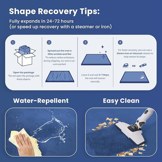 - Tips: When you first received the mat, there may be a situation that it has not fully rebounded, the length and thickness may not have returned to the original state. We recommend that you use an iron or wait 3-5 days, your Relax Mat should be ready to use! Don't worry if it's a little smaller than it's meant to be, it will continue to fully expand and puff up, the mat will Restore to the original state