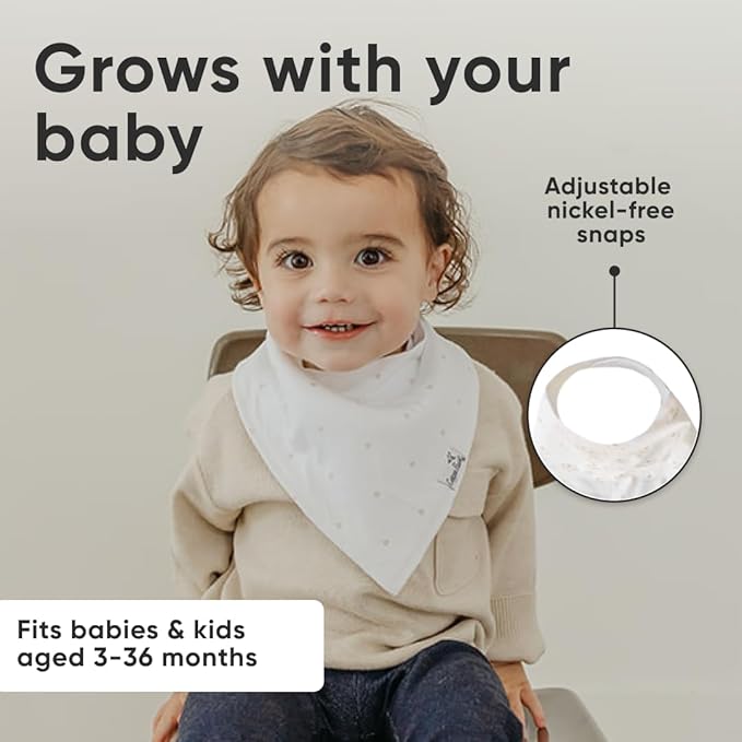 - GROWS WITH YOUR BABY: Each bib features two adjustable nickel-free snaps, allowing for a perfect fit from newborn through toddlerhood (3β36 months).