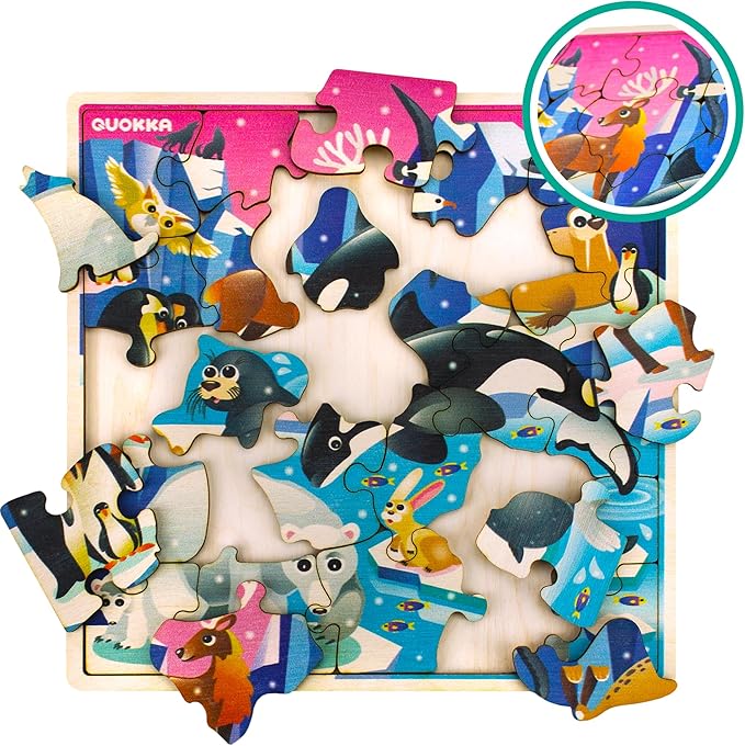 QUOKKA Wooden Polar Puzzles for Kids Ages 3-5 – 28 Pieces Toddlers Kids Puzzles Ages 4-8 Year Olds – Wood Polar Animal Toys for Children Games for Boys and Girls 6-8 yo