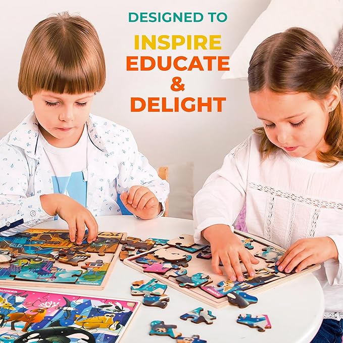 - ORGANIC AND DURABLE: kids puzzles age 4 and up have detailed vibrant images due to direct printing on wood with American water-based paints; puzzles improve boys' girls' hand-eye coordination, cultivate your child's patience and solving capacities