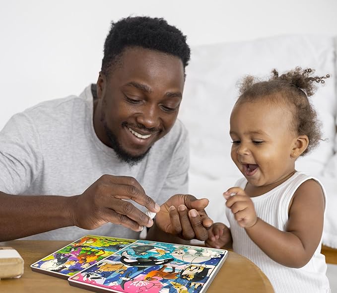 - UNIQUE WOODEN PUZZLE SHAPES: every jigsaw puzzle has 28 pieces puzzle shapes for kids to play with; We assemble them manually; Create fun learning games with Wild Animals; Great puzzles for kids ages 3-5 and up