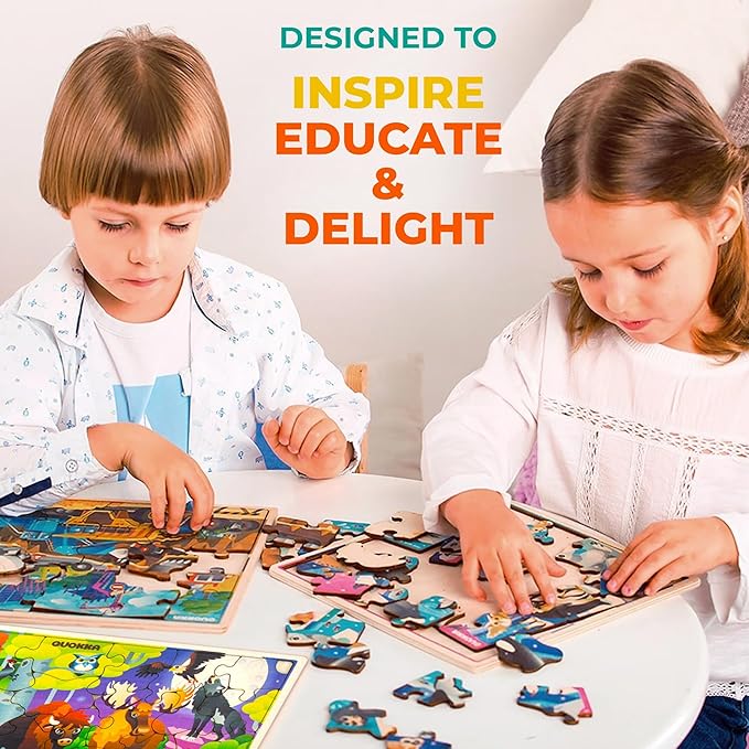 - ORGANIC AND DURABLE: kids puzzles age 4 and up have detailed vibrant images due to direct printing on wood with American water-based paints; puzzles improve boys' girls' hand-eye coordination, cultivate your child's patience and solving capacities